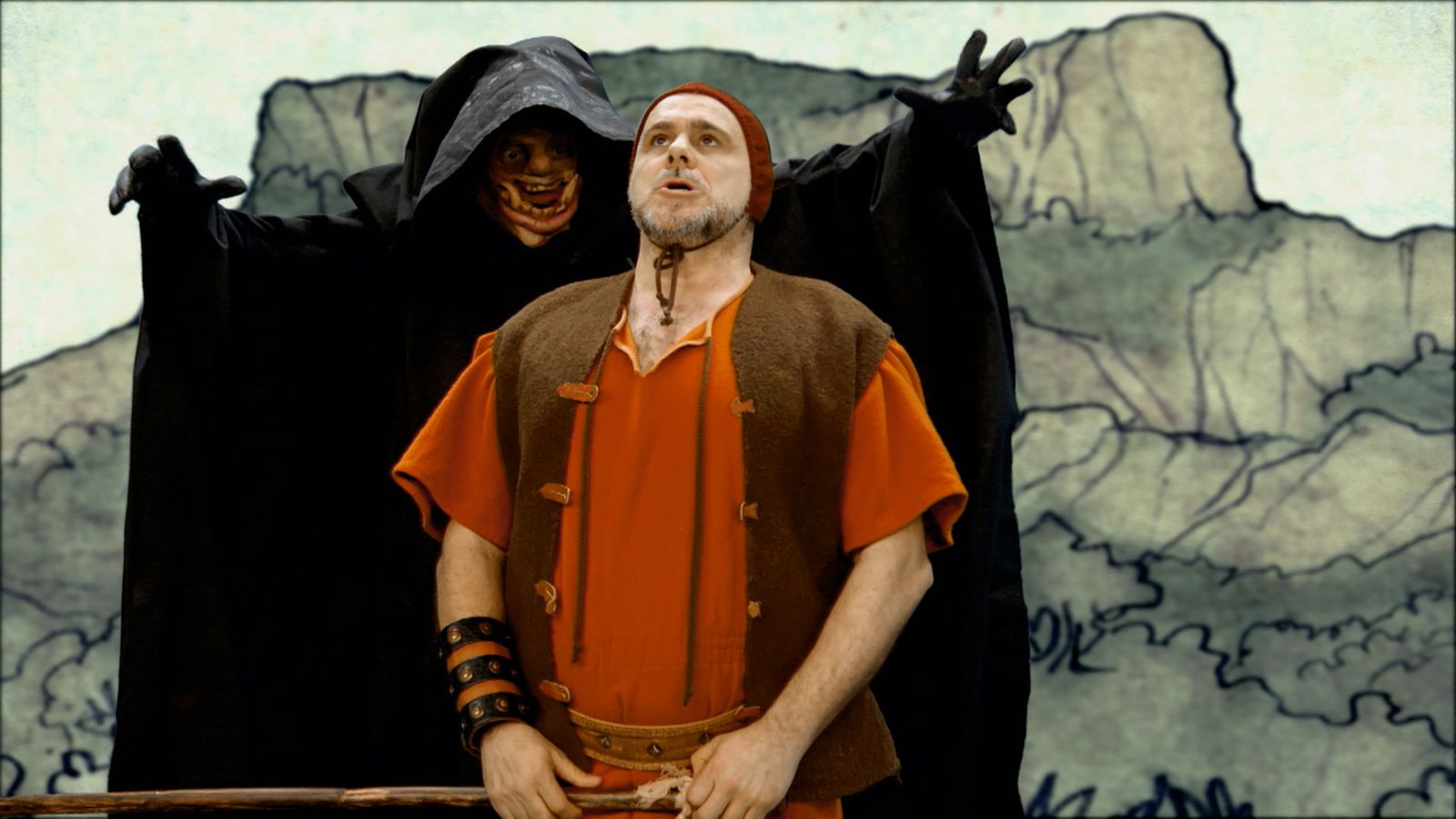 L'esmorzar no es pot perdre En este fragment de "La caputxa negra" un dels tres germans inicia el seu camí tot sol, però li entra fam i para a buscar l'esmorzar.