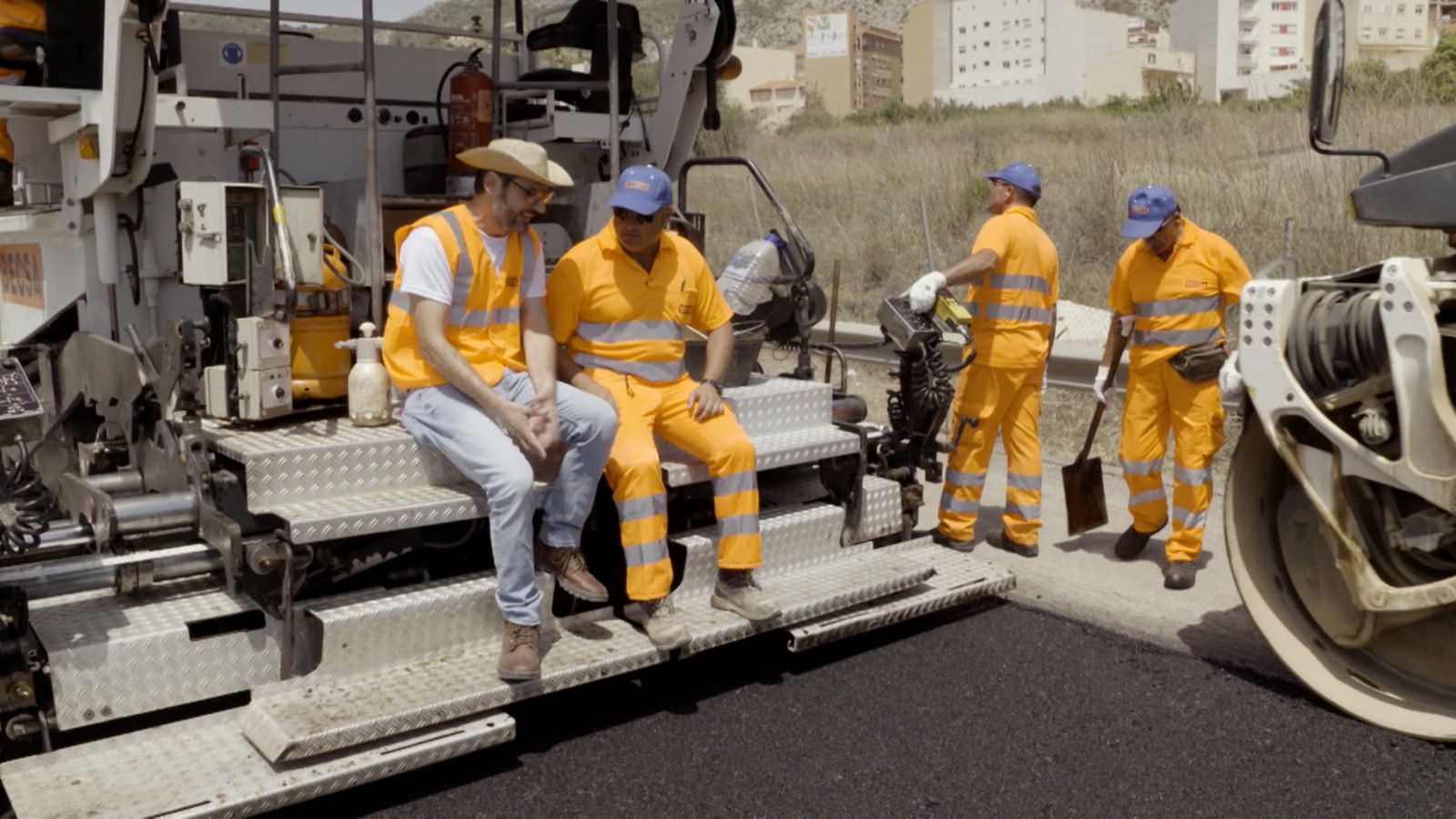 Eugeni Alemany conversa amb el cap d'obra d'una carretera i este ens explica quin és el procés d'asfaltatge i quines màquines s'utilitzen per a fer-ho.