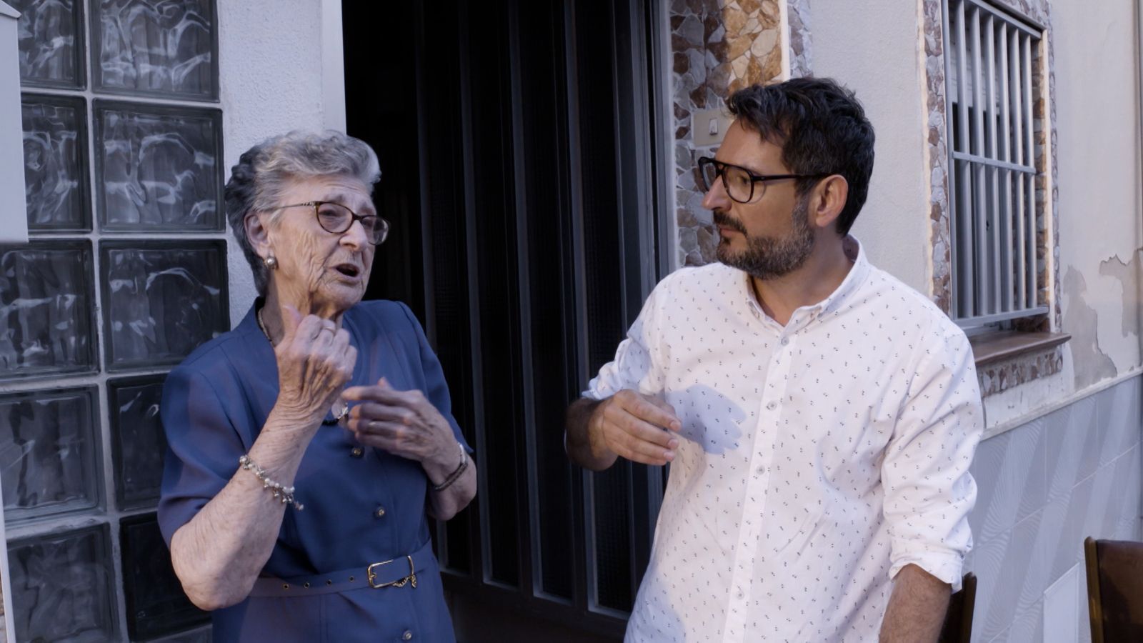 Eugeni Alemany saluda unes veïnes de Cullera que estan a la porta del carrer a la fresca i una d'elles li ensenya un tresor molt valuós que té a casa: un santet.