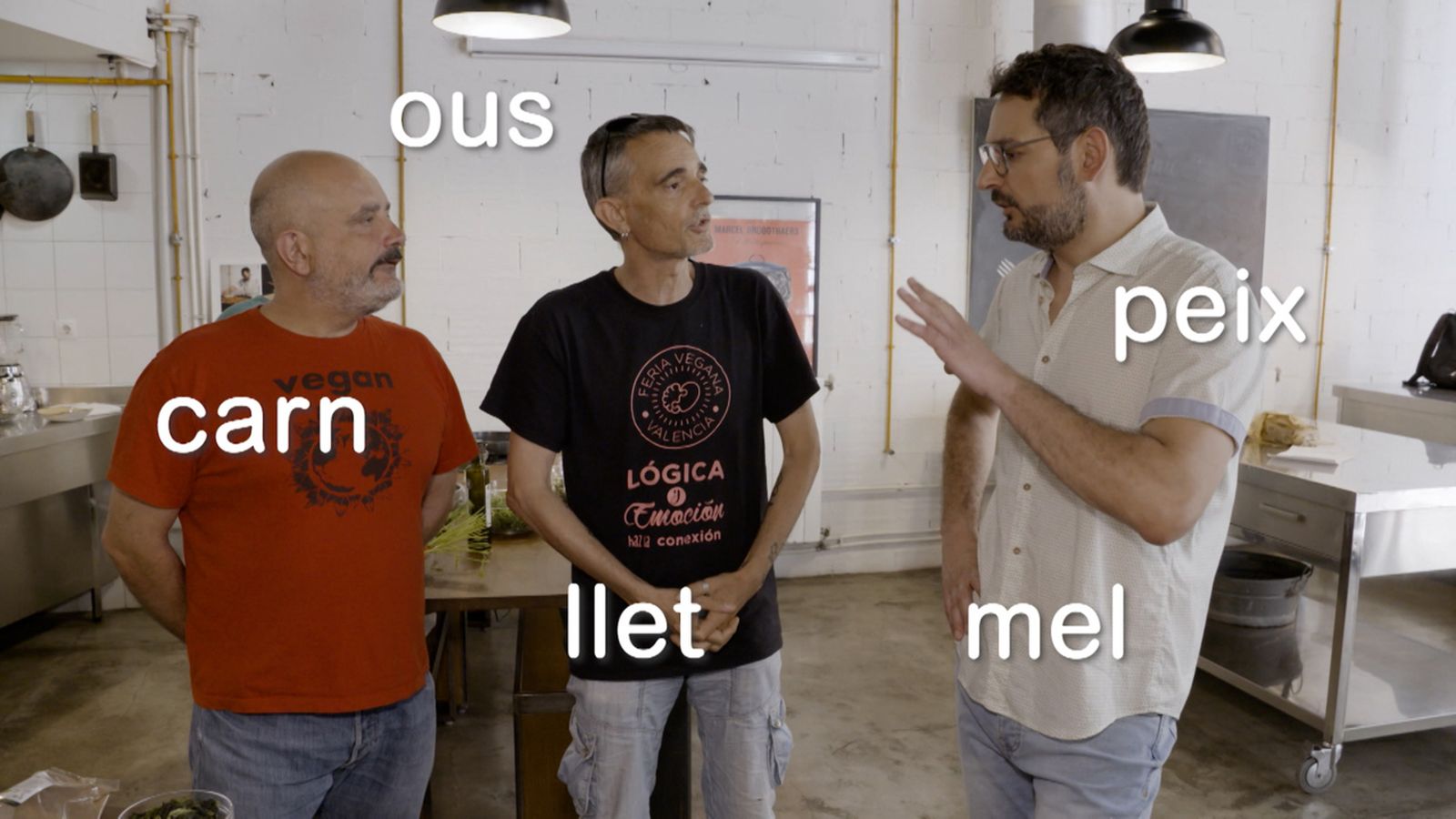 Jesús i Miquel, que són vegans, ens expliquen quins són els aliments que no mengen i què és exactament l'antiespecisme. Després, ens conten com es pot fer una paella vegana.