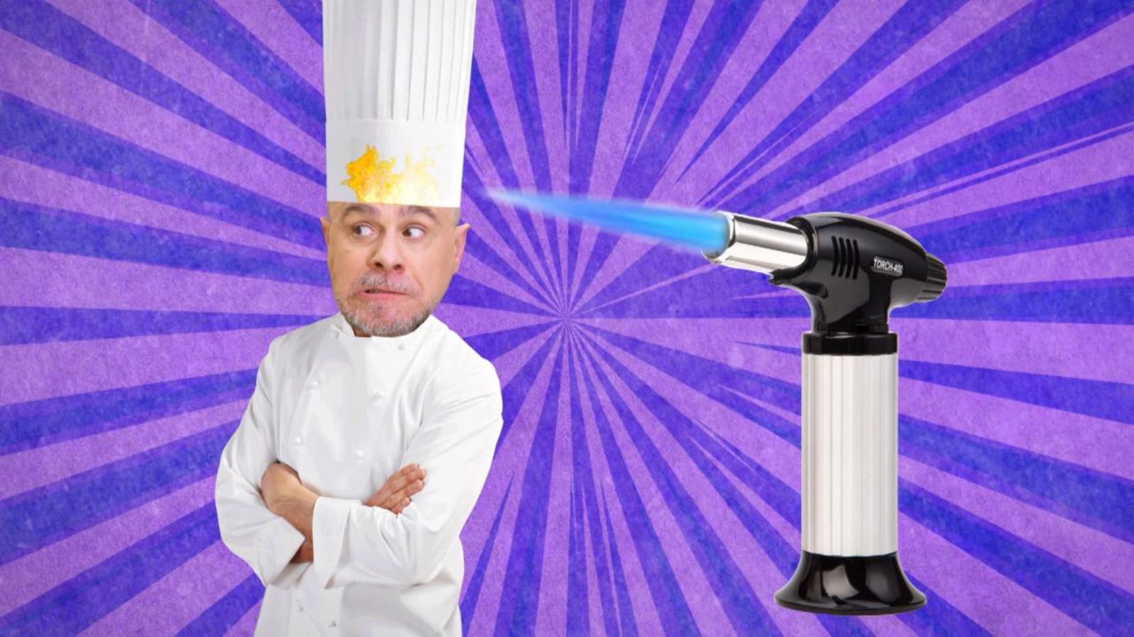 , dos clients i el cambrer del restaurant debaten sobre l'origen del cremadet i d'alguns altres productes típics valencians.