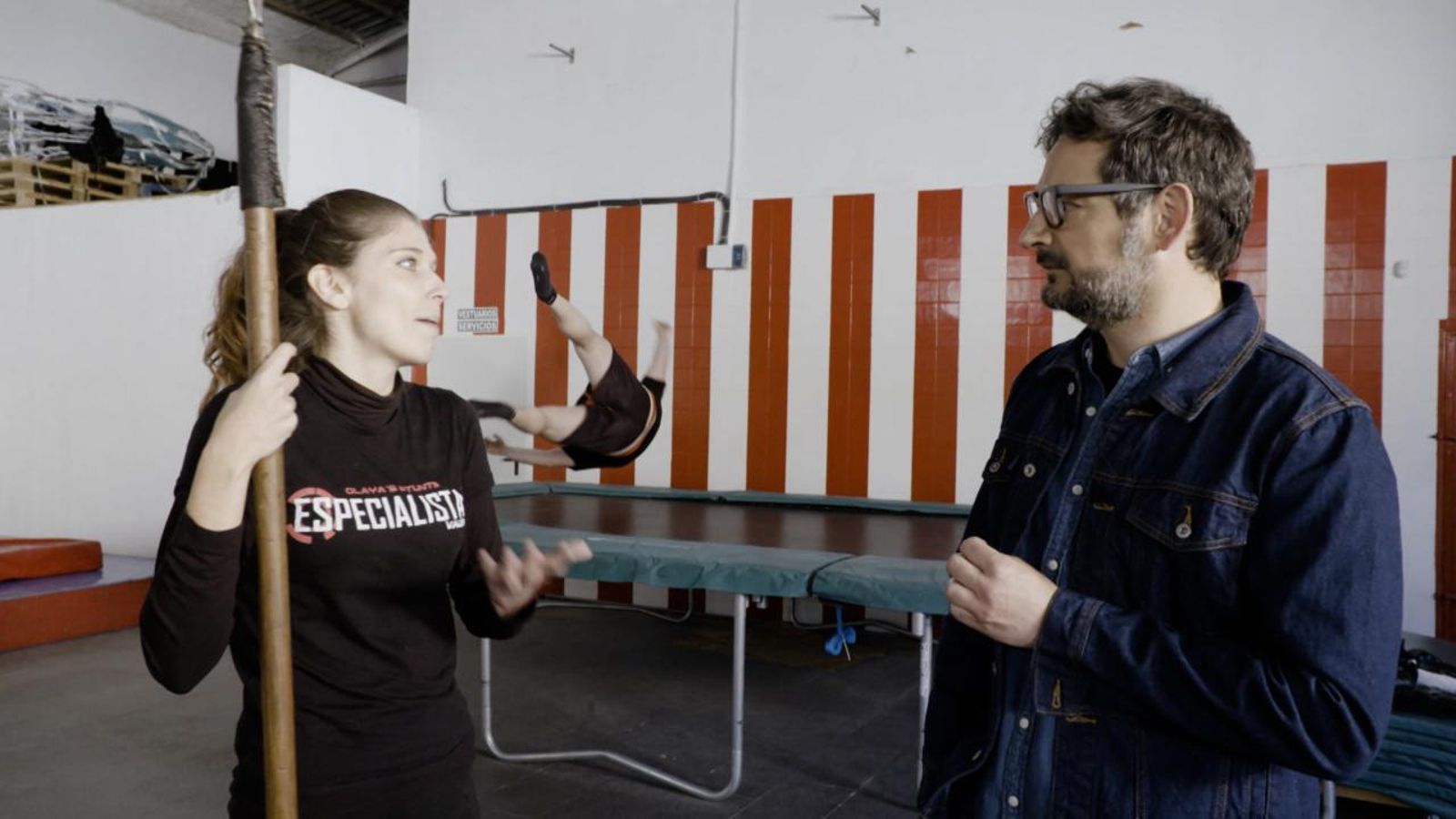 Eugeni Alemany entrevista Violeta Sánchez, especialista de risc, amb qui parla de la diferència entre un doble i un especialista i dels tipus d'armes que hi ha.